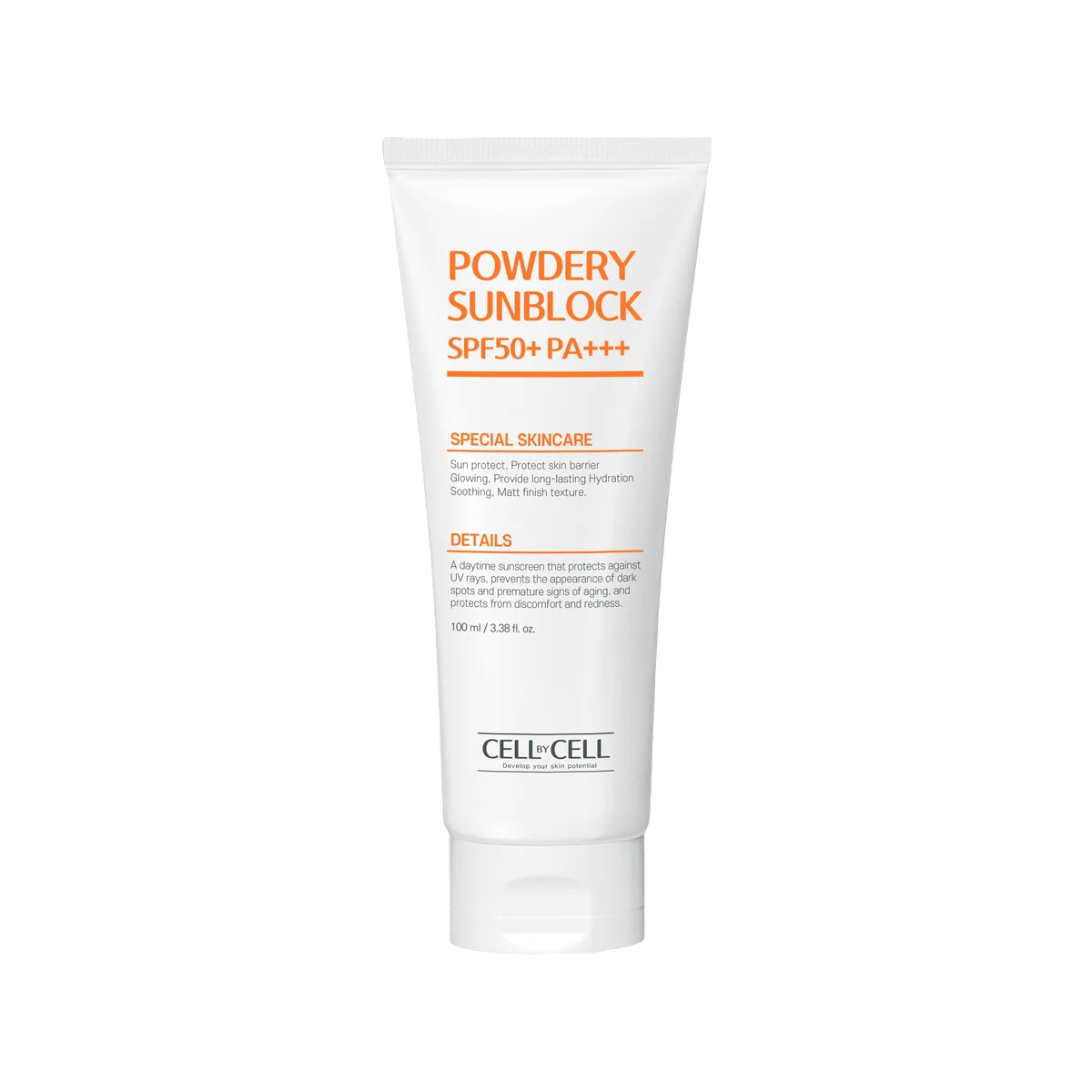 Introducing Cell By Cell Powdery Sunblock Sunscreen Cream—A sun-resistant shield for your skin. Expertly formulated, Cell By Cell Powdery Sunblock Sunscreen Cream provides broad-spectrum protection, shielding your skin from both UVA and UVB rays. The creamy texture glides on smoothly, creating a comfortable and effective barrier. Enriched with nourishing ingredients, Cell By Cell Powdery Sunblock Sunscreen Cream not only defends but also moisturizes, leaving your skin feeling pampered and cared for. Elevate your skincare routine with the essential daily protection of Cell By Cell Powdery Sunblock Sunscreen Cream, where each application is a commitment to the health and radiance of your skin.