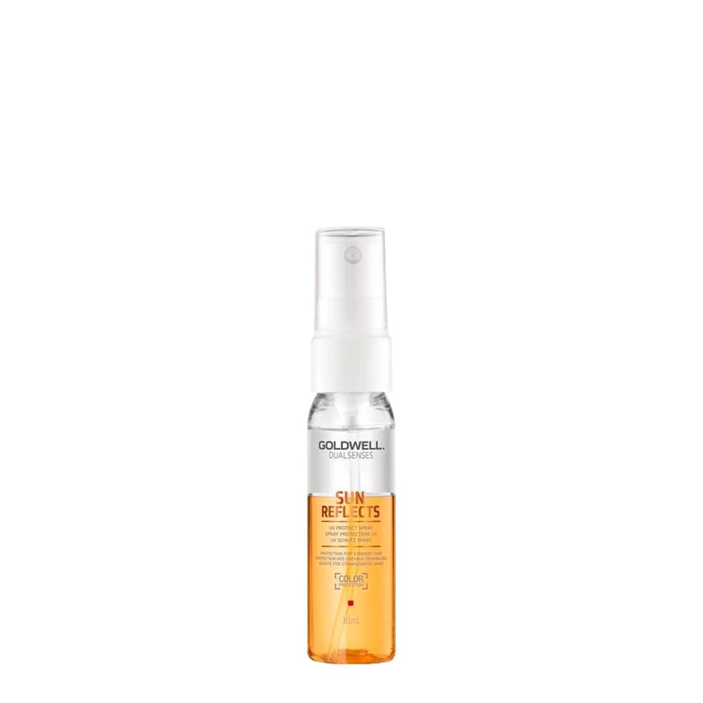 To use Goldwell Dualsenses Sun Reflects hair spray treatment, start by shaking the bottle well. Hold the bottle about 8-10 inches away from your hair and spray evenly, focusing on the mid-lengths to ends. For best results, use on damp hair before blow-drying or styling with heat tools. Alternatively, you can use it on dry hair as a finishing spray to add shine and hold. Don`t over-saturate your hair, as a little goes a long way. Style your hair as desired and enjoy the benefits of Goldwell Dualsenses Sun Reflects`s nourishing and protective properties. Use as often as needed to maintain healthy and beautiful hair.