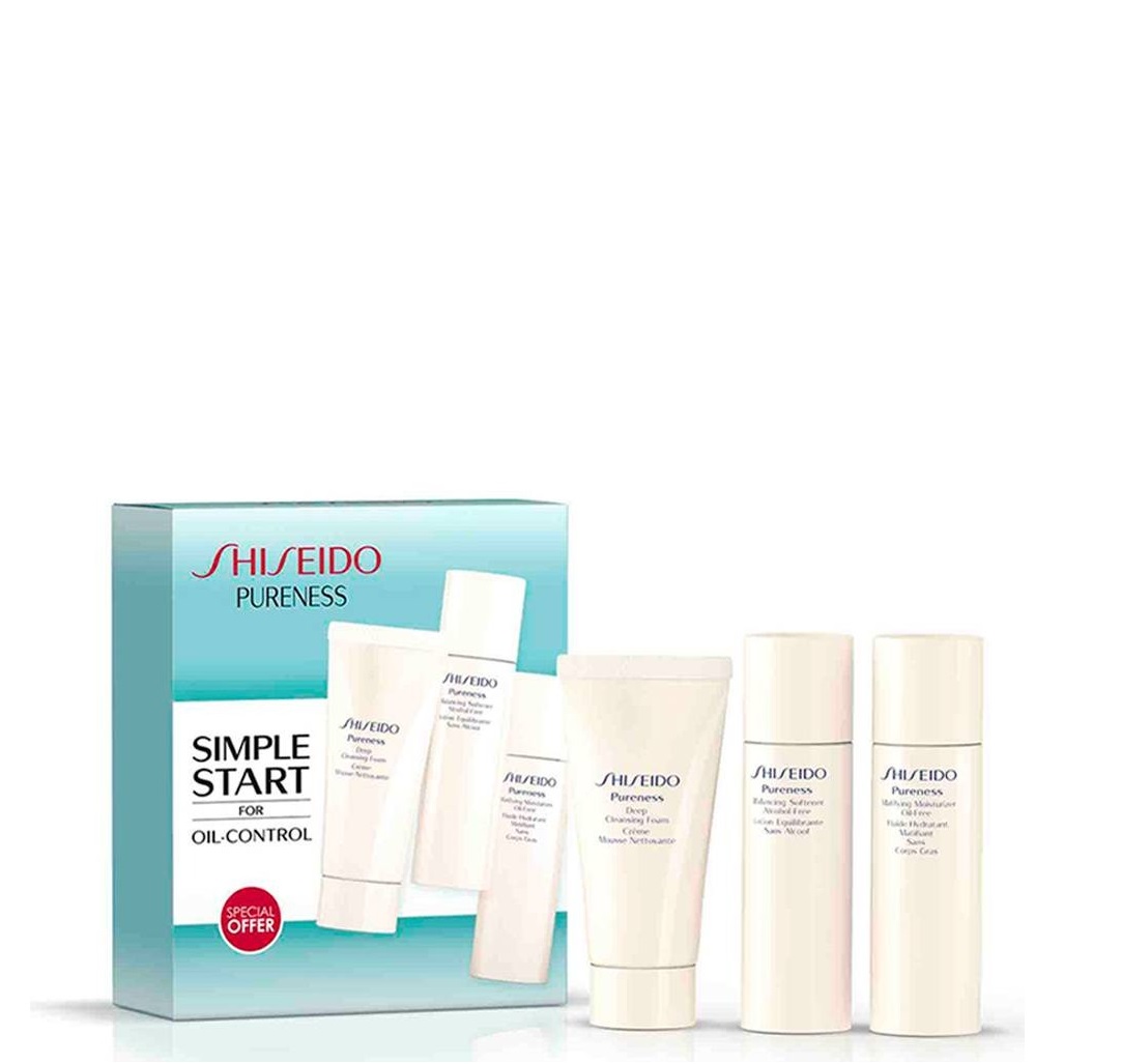 Pureness Set Shiseido: Pureness, Alcohol-Free, Smoothing, Densifying & Illuminating, Lotion, For Face, 30 ml + Pureness, Restoring & Refreshing, Cleansing Foam, 30 ml + Pureness, Oil-Free, Moisturizing, Lotion, For Face, 30 ml