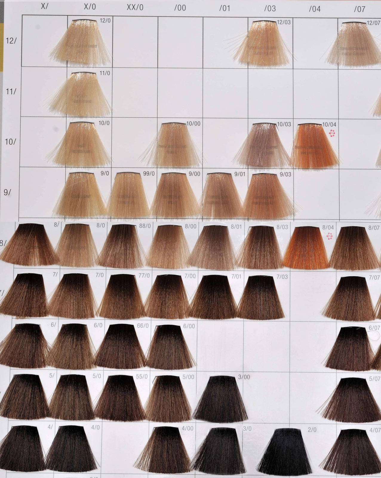 Koleston Perfect, Hair Colour Chart